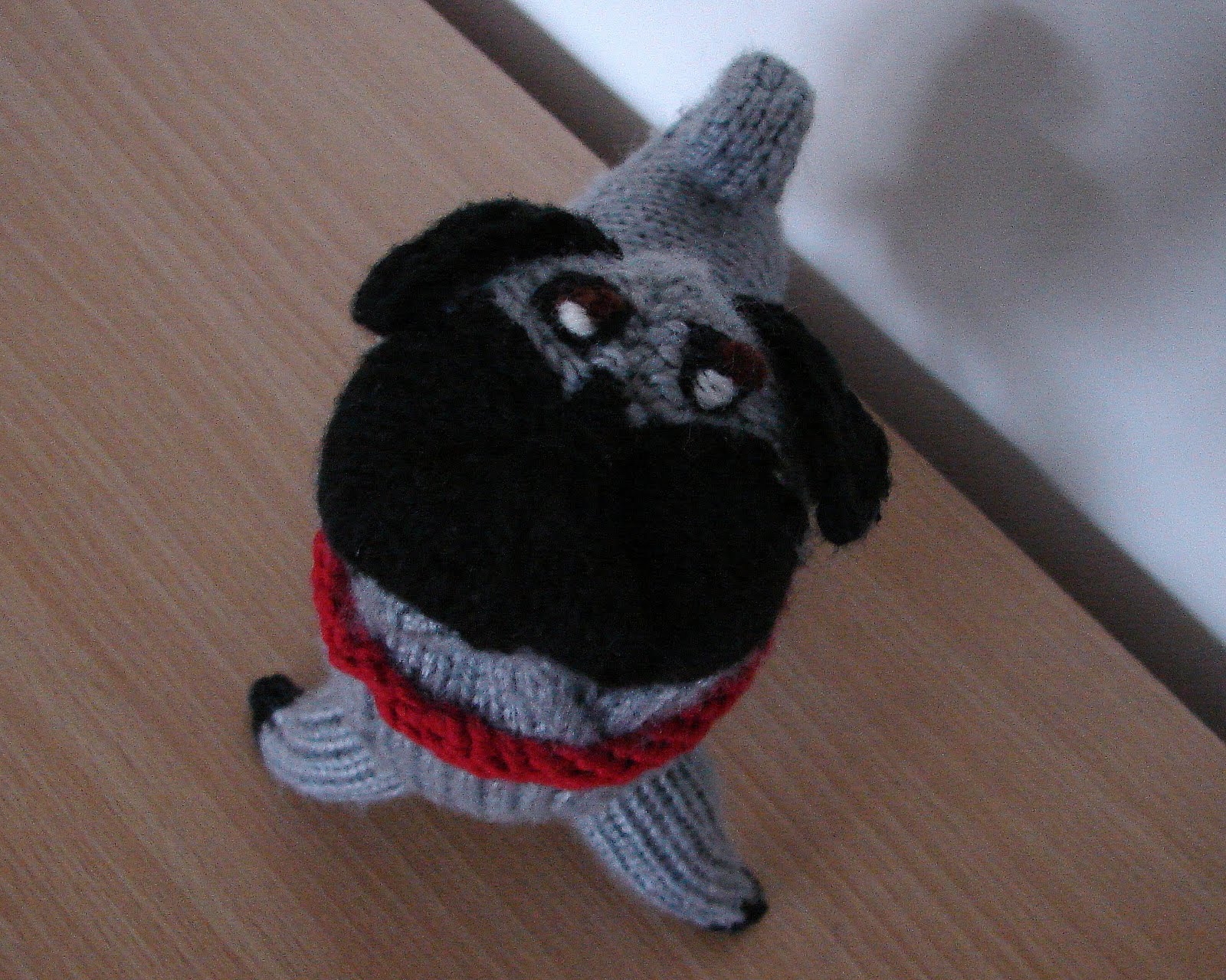 This week I knitted small stuffed pug dog for a little girl. Pattern is from the book Knit Your Own Dog and I should say it involved a lot of sewing. Knitting was the easiest part :)